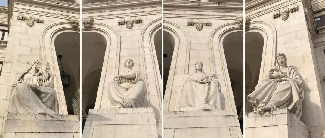 △议会大厦前有四座雕像,分别象征着谨慎、力量、正义和节制。(央视记者张淳拍摄)