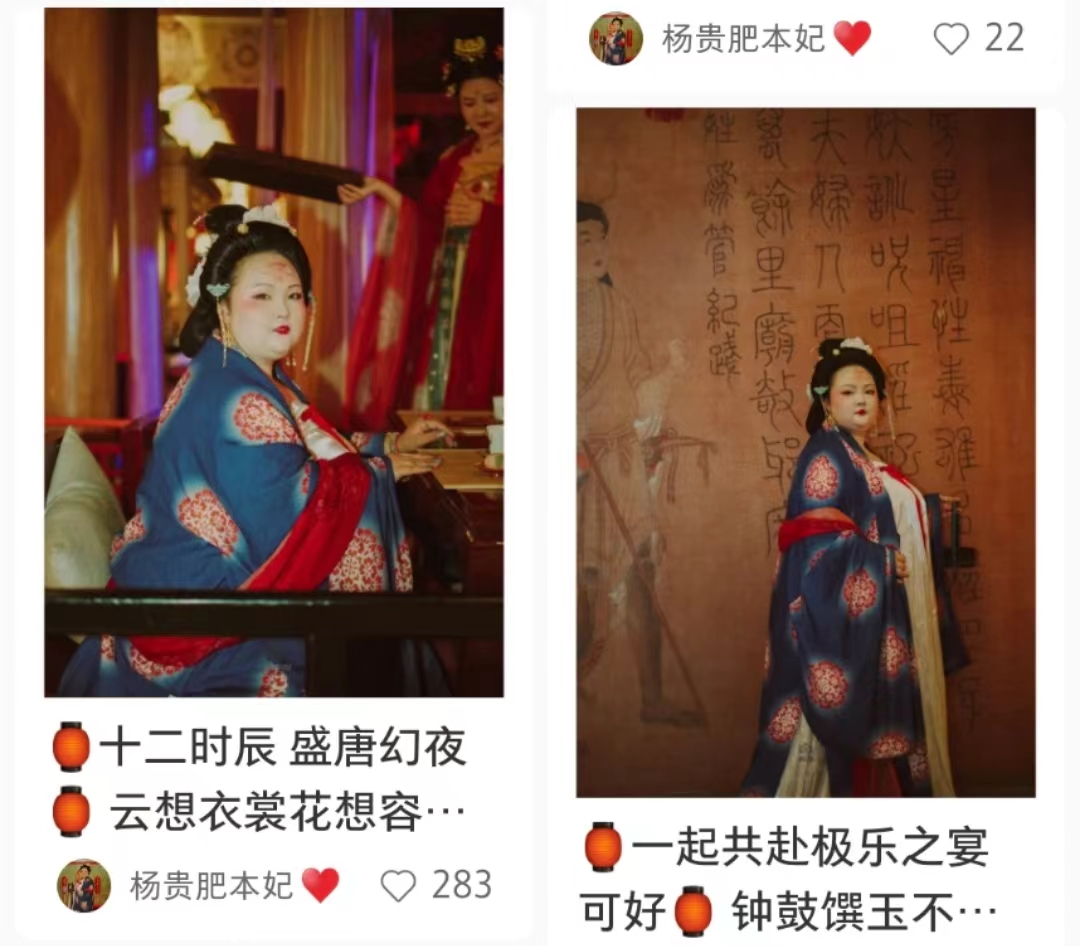 其中一位唐朝仕女堪称顶流,完全是长安十二时辰里的玲娜贝尔。丰满身材的差异化形象在网上爆火,不少游客专门为她而来,找不到了还要问其他工作人员:“你们那个胖胖的演员在哪?”