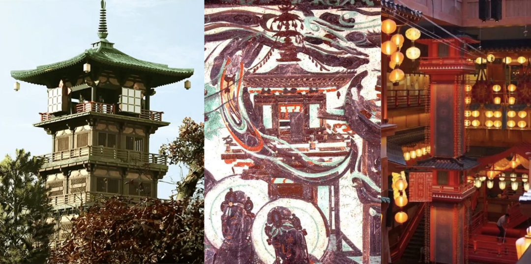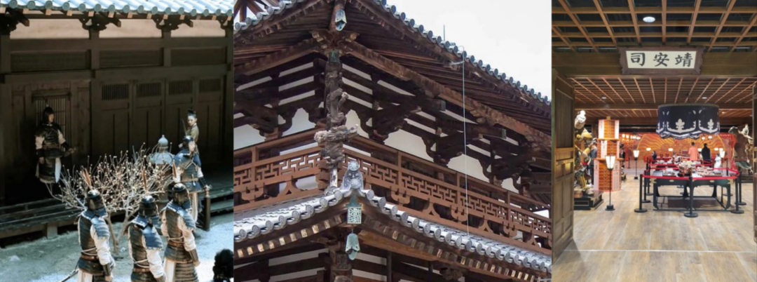 ■ 从左到右依次为剧中靖安司、法隆寺金堂和复原靖安司