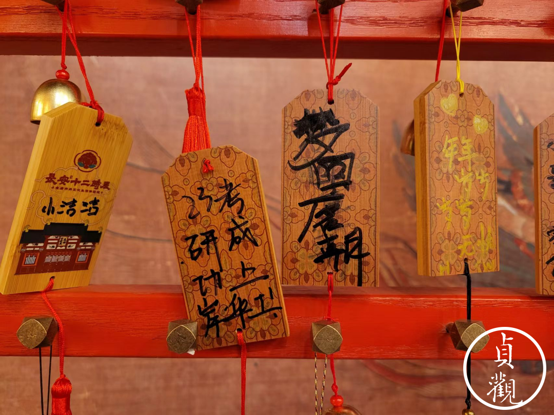 在长安十二时辰街区的许愿区,我随手翻看了几块写满祝福的木牌,有祈求家庭平安、身体健康的,就像任何一个景区里都有的那样。而这里更多的,则是一些专属年轻人的愿望,譬如考研成功、工作上岸。