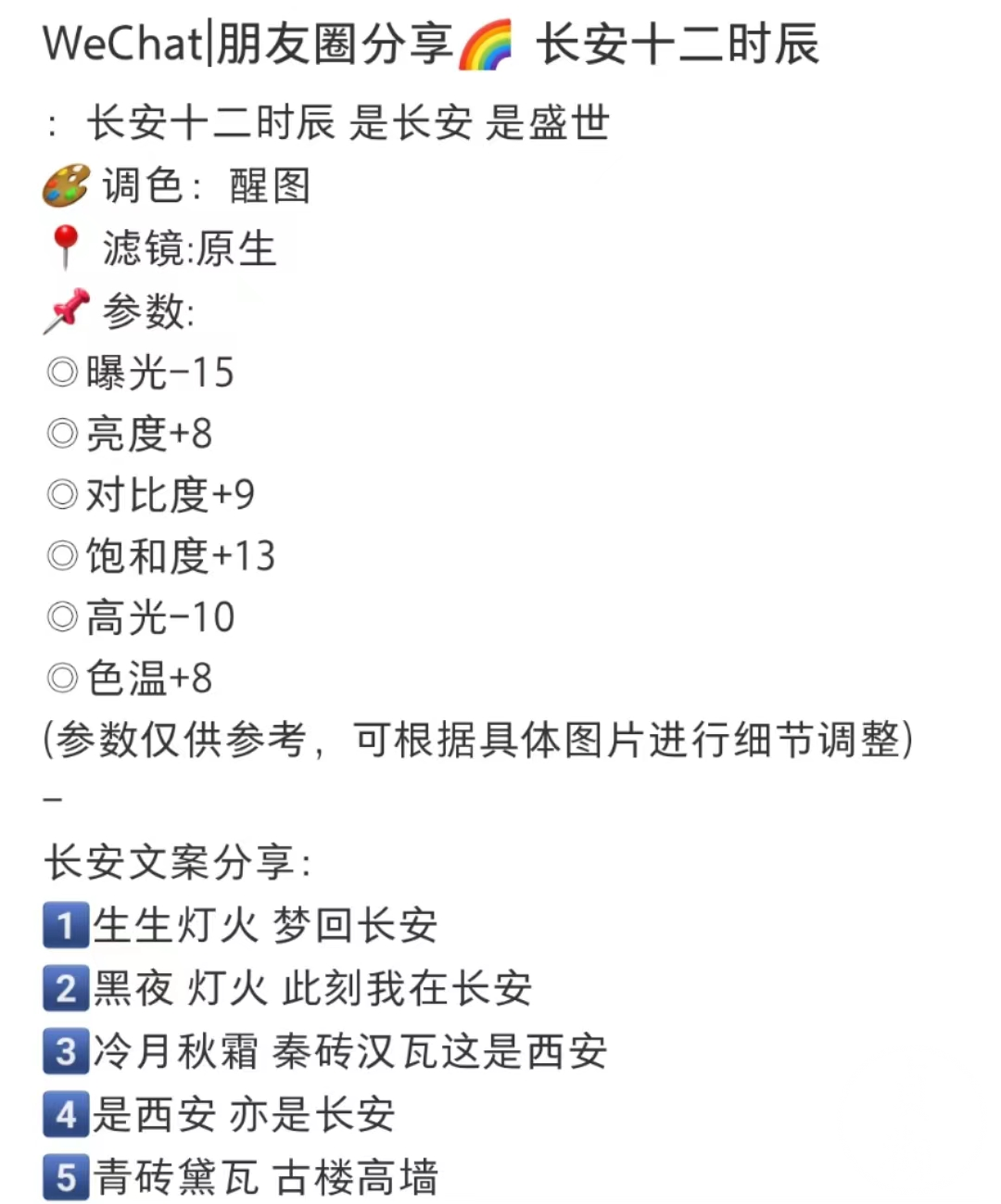打开小红书,搜索长安十二时辰,你会发现除了打卡体验,点赞最多的就是出片教程和调色分享,对比度、饱和度和色温有多高加多高,这样才能凸显长安上元灯夜的繁华。
