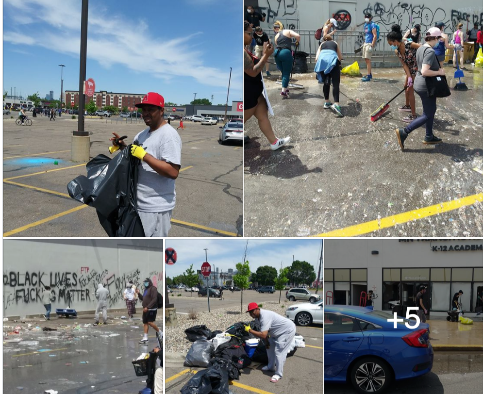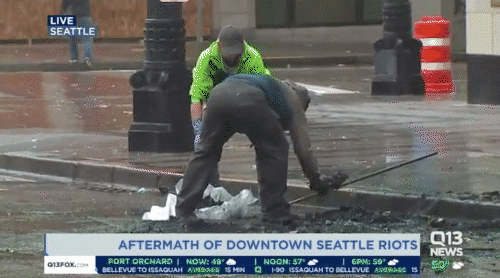 而在抗议的原爆点,一位普通的“蜘蛛侠”,走上了街头,清扫泄愤后的一地鸡毛...