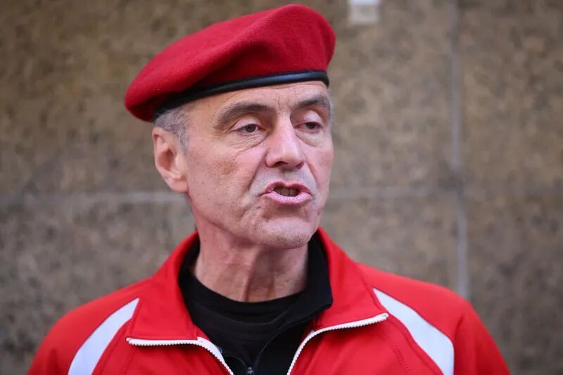 在纽约,66岁的Curtis Sliwa戴上红色贝雷帽,穿上红色夹克