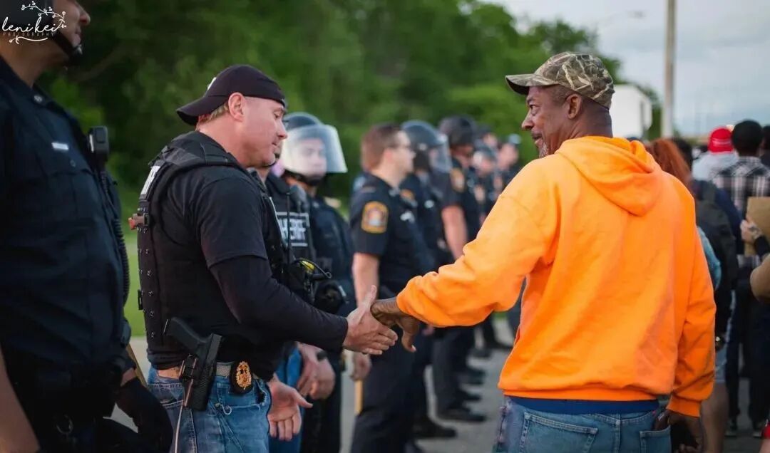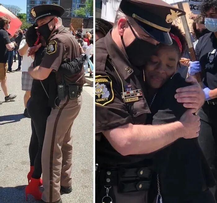 和前两天在警察喷小女孩辣椒水的画面形成鲜明反差...