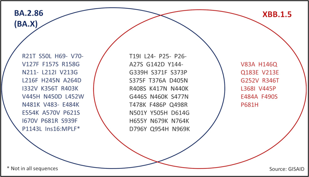 如果说EG.5引人关注是因为它在迅速增长,取代XBB.1.5。那么BA.2.86的关注点则完全是在突变上。