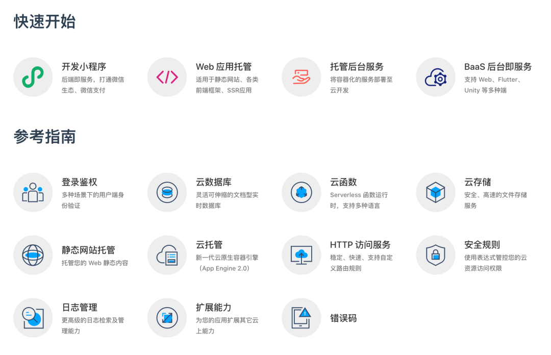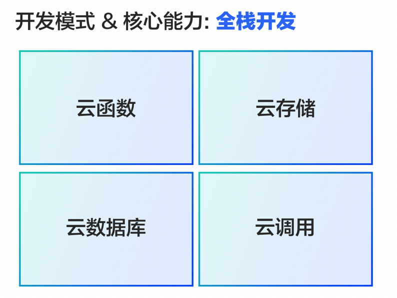 | 云调用 | 原生微信服务集成 | 基于云函数免鉴权使用小程序开放接口的能力,包括服务端调用、获取开放数据等能力 |