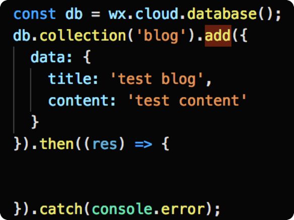 云开发:仅前端,仅需 2 分钟。通过云开发的数据插入接口,快速入库至腾讯云,保障高性能和安全性,在小程序控制台还可以随时对数据库进行可视化监控及管理。