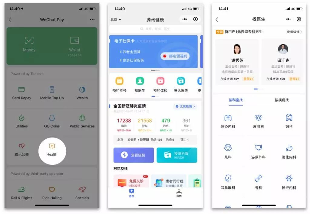 Naturally, one of the positively impacted segments is online health services. WeChat recently added a new "Health" segment to its WeChat Wallet menu.
