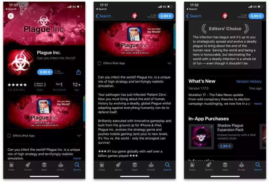 Some games got special attention due to the recent health crisis. The game "Plague Inc." which lets players "spread and evolve a deadly plague to bring about the end of the human race" was one of the winners.