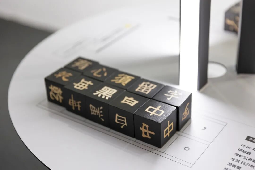 展区特地运用大片镜面连接各大展区,在让空间无限延伸的同时,也能让观众身历其境。展区中央设立了文字核心五站点,常见的字体以积木、卡片等形式展现,说明其历史、风格与用处,如文字的清晰、一致性、层次、应用规则与比例。