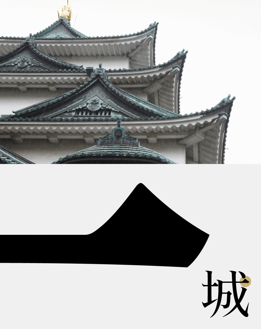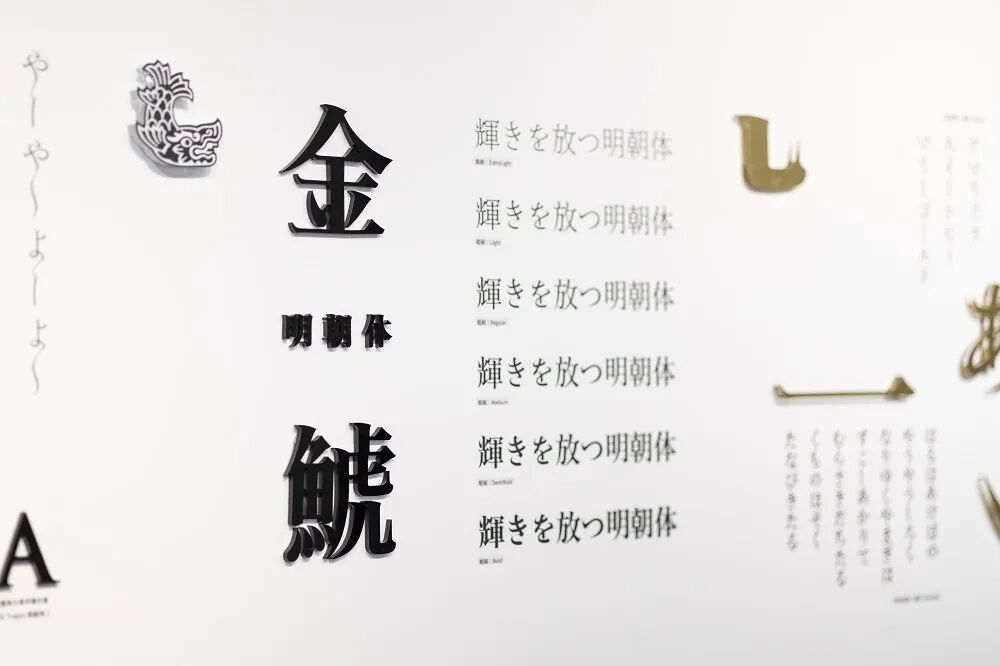 曾获日本文化部特别奖项的Type Project字体团队则提供了方便远处阅读的日本国家公园特制字体“TP国立公园明朝”和传递名古屋城文化和品牌形象的字体“金鯱”。后者以名古屋城上鱼身虎首的“金鯱”为灵感,其横笔起头如金鯱鱼尾昂扬的姿态,收尾则如日式城堡山墙,字体典雅优美。