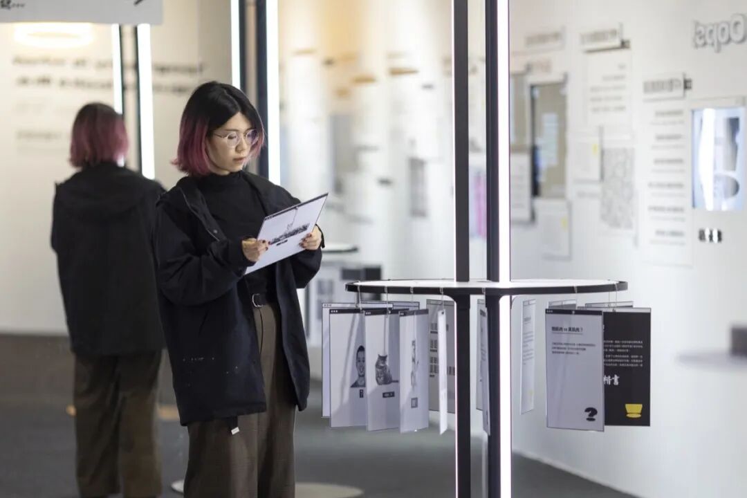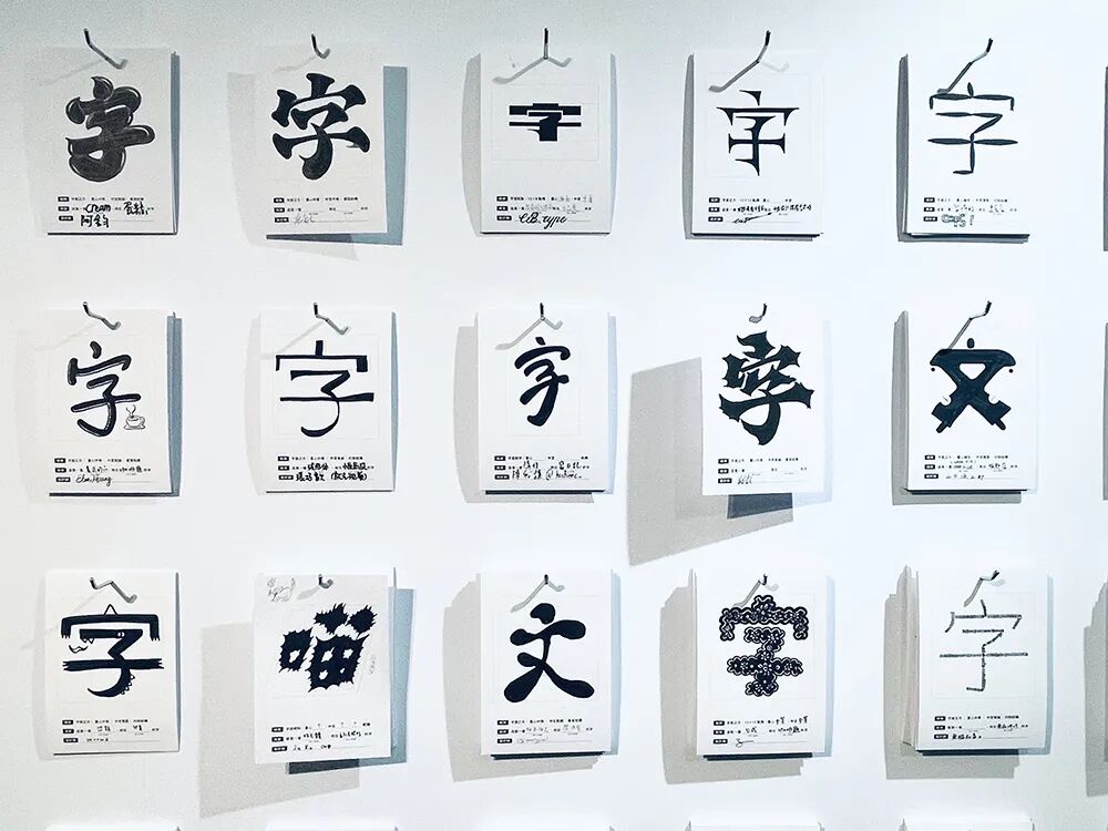 创作完成后,观众可以把作品挂到展示区。展示区挂满了观众们以猫、鸟、或是人体器官为灵感的各式各样的字体作品。