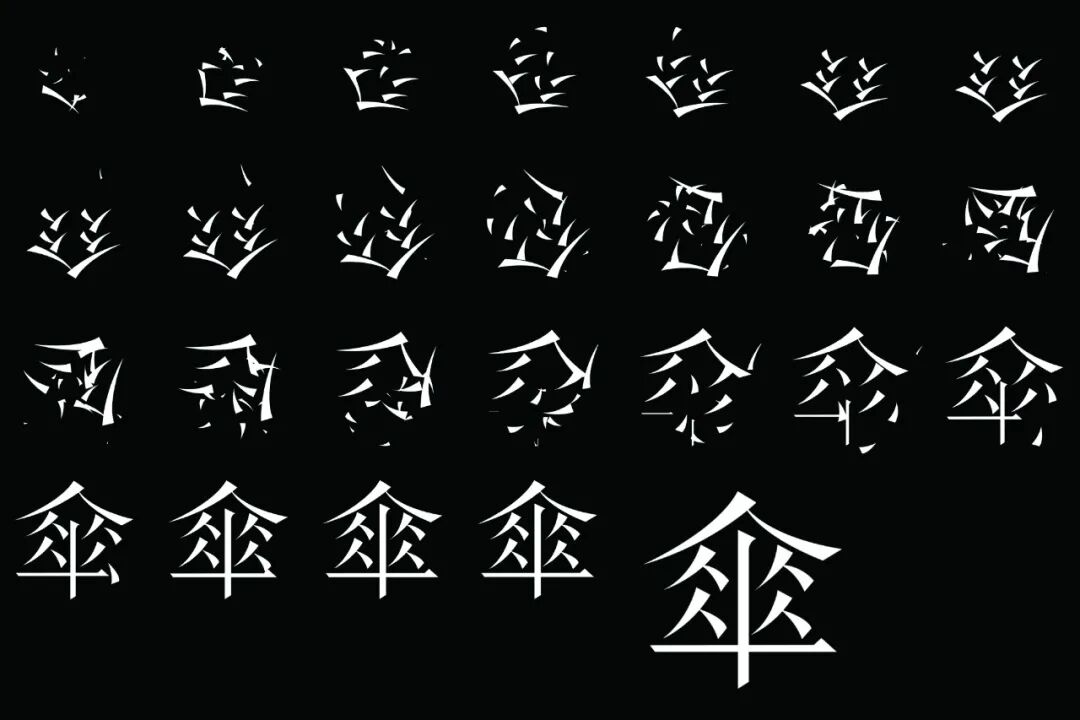 不少设计师在设计一套字体时,都是从“永意风国今警我然转随鹰酬”这12个设计起始字开始,快速确定整套字库的风格的设计要点的。这12个字包含了汉字中可能出现的各种结构和极端情况。比如,设计师可以通过“永”字先设计基本笔画,再通过其他字确定字体的轮廓、横竖笔平衡、复杂构造、曲线设计等不同元素。随后12个字拓展为50个字,最后才扩展到数千字。