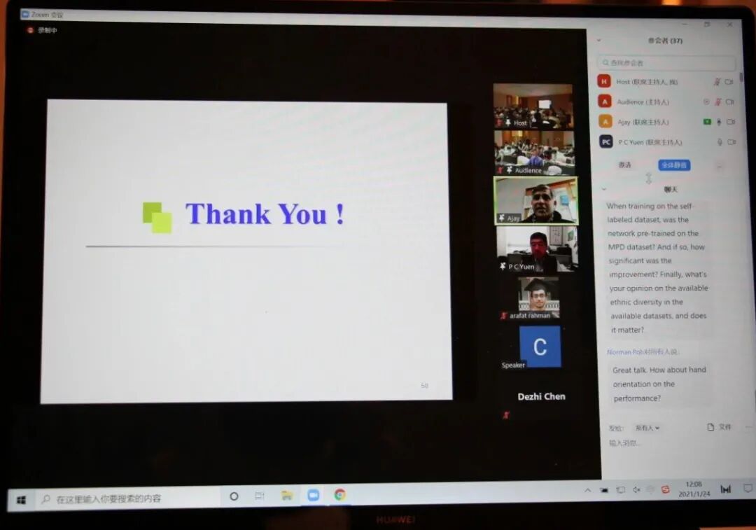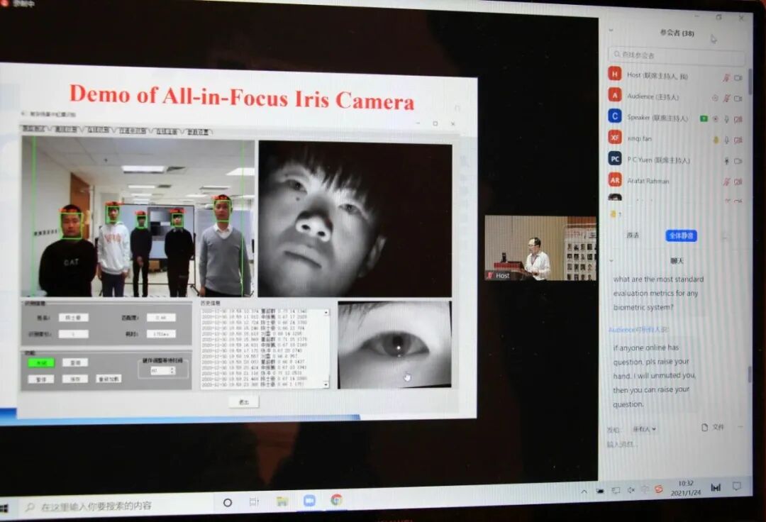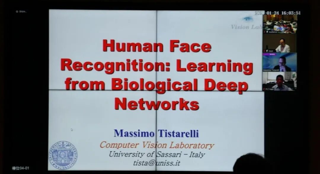 下午的第一场讲座由来自意大利萨萨里大学的Massimo Tistarelli教授线上主讲,他的讲座题目是“Human Face Recognition: learning from biological deep networks”。报告指出在过去的十年中,深度学习技术极大地影响了计算视觉的许多方面。现在,可以经过适当调整和培训深度网络来执行许多困难的视觉任务。在过去的几年中,已经提出了在大型的数据集上进行训练的几个或更复杂的深度卷积网络,仍然在颇具挑战性的公共数据库上提高了性能标准。Massimo Tistarelli教授分析了一个混合模型网络,试图更好地理解不同层地作用,包括通过对数极性图像重采样模拟地视网膜皮层映射。在参会人员的提问下,Massimo Tistarelli教授详细地回答了关于深度卷积网络中的表示空间,以及表示空间如何反映人类视觉皮层组织等专业问题。