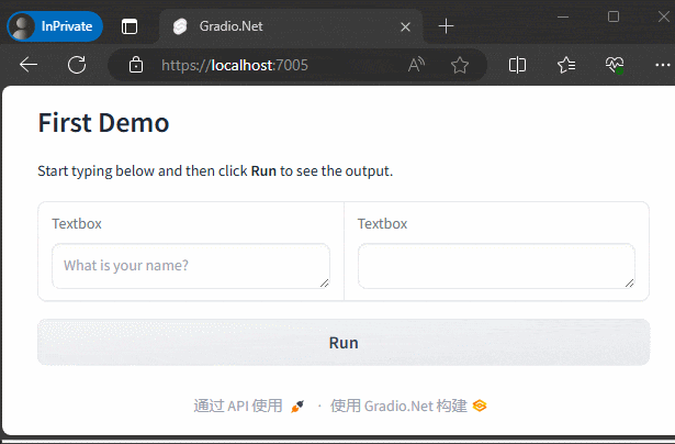 当 Gradio.Net 运行时,它会提供一个完整的前后端功能网站: