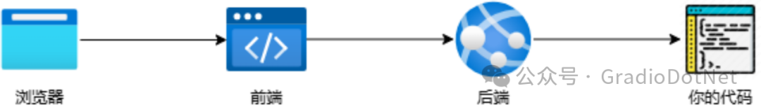 用户访问你的Web应用时,浏览器会加载Gradio.Net的前端,就像加载用 Vue 等前端框架开发的网站一样。