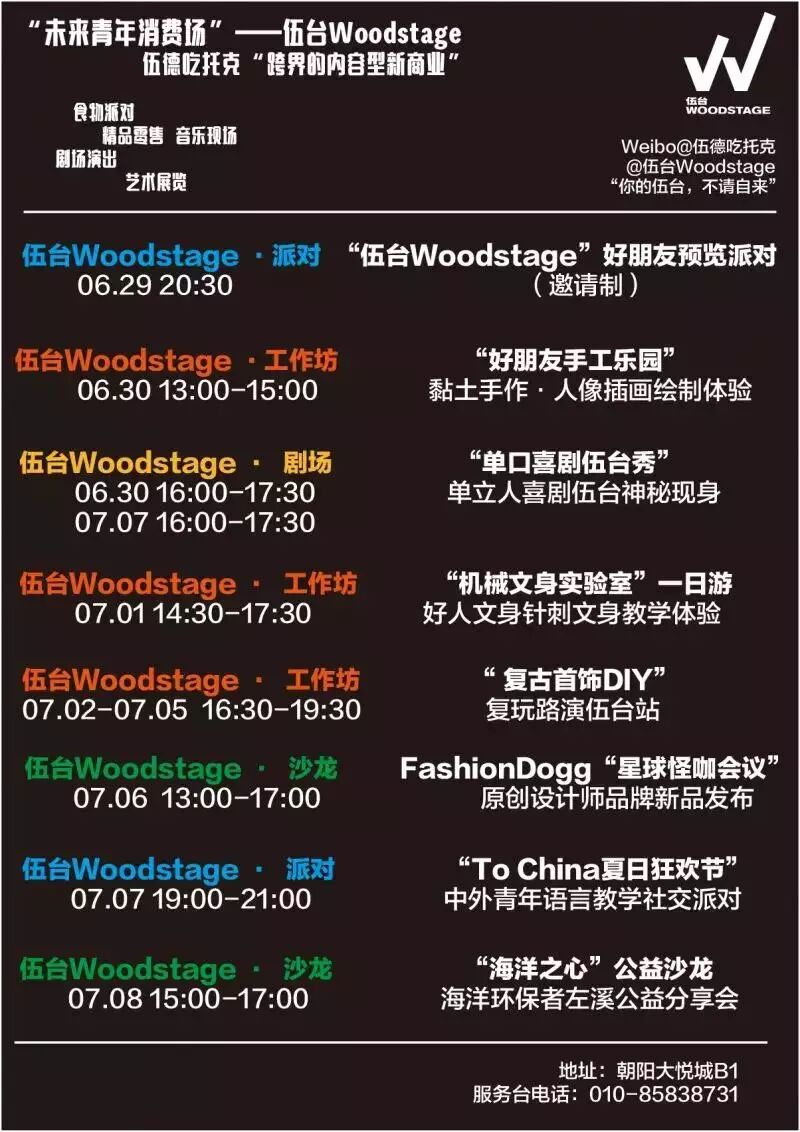 有多少人希望有一个地方能把自己喜欢的美食、美物、音乐、展览等等美好的生活方式都糅在一起。来自将城市线下嘉年华玩得风生水起的伍德吃托克可以满足你的心愿。北京朝阳大悦城和他们联手,打造了今夏最in、最好玩的娱乐场——“伍台 Woodstage”, 伍台用极具未来感的陈列方式,把街头美食、精品零售、现场娱乐、艺术展览、青年社交等集为一体。这里既是live house又是美食聚集地,既是周末夜晚的寻趣派对又是艺术展览的发生地。