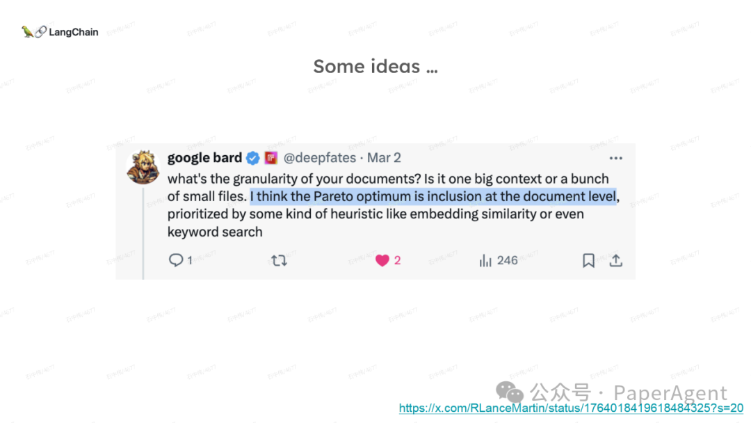 多针“大海捞针” :https://blog.langchain.dev/multi-needle-in-a-haystackChallenge may be recency bias in LLMs:https://arxiv.org/pdf/2310.01427.pdfRAG from scratch:https://github.com/langchain-ai/rag-from-scratchRAG新突破RAPTOR:https://github.com/parthsarthi03/raptorDense X Retrieval:https://arxiv.org/pdf/2312.06648.pdfTogether Embeddings:https://www.together.ai/blog/embeddings-endpoint-releaseSelf-RAG:https://arxiv.org/abs/2310.11511CRAG:Corrective Retrieval Augmented Generationhttps://arxiv.org/abs/2401.15884