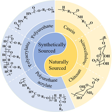 图1. 用于皮革涂层的聚合物的分类及其结构。