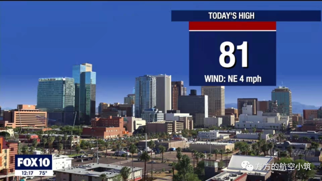 下图是坠机后1小时,福克斯新闻10频道报道凤凰城(距离卢克基地也就30公里)当地的天气情况。可以看到当时的天气良好,没有足以影响飞行安全的恶劣天气。