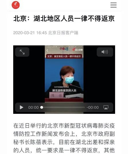 今天,一条关于湖北人一律不得进京的视频在朋友圈刷屏了。我上北京市疾控中心搜了搜,没有发现相关信息。