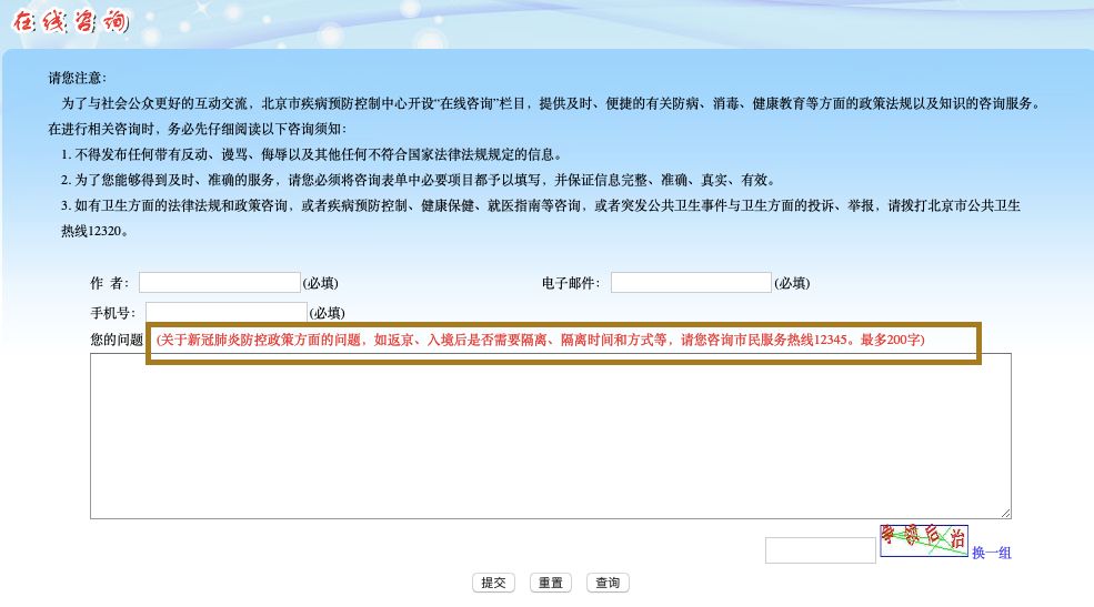 “关于新冠肺炎防控政策方面的问题,如返京、入境后是否需要隔离、隔离时间和方式等,请您咨询市民服务热线12345。”按照北京疾控中心的提示,我给12345打了个电话。