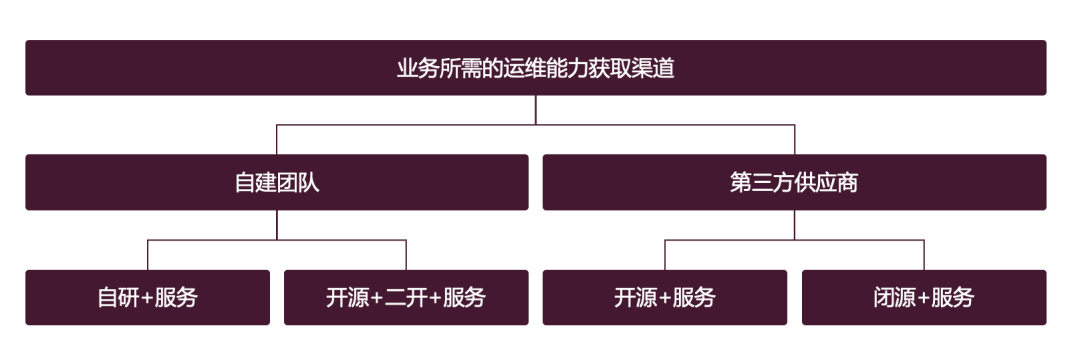 既然一切都是为了业务成功(不考虑业务,只考虑自己能否晋升能否忽悠老板的另当别论),我们就重点来看业务需要哪些运维能力(后文详细讲解),需要从哪里获取这些运维能力,典型的获取方式有三种。