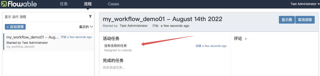 启动流程之后,点击显示图,可以查看流程走到哪一步了: