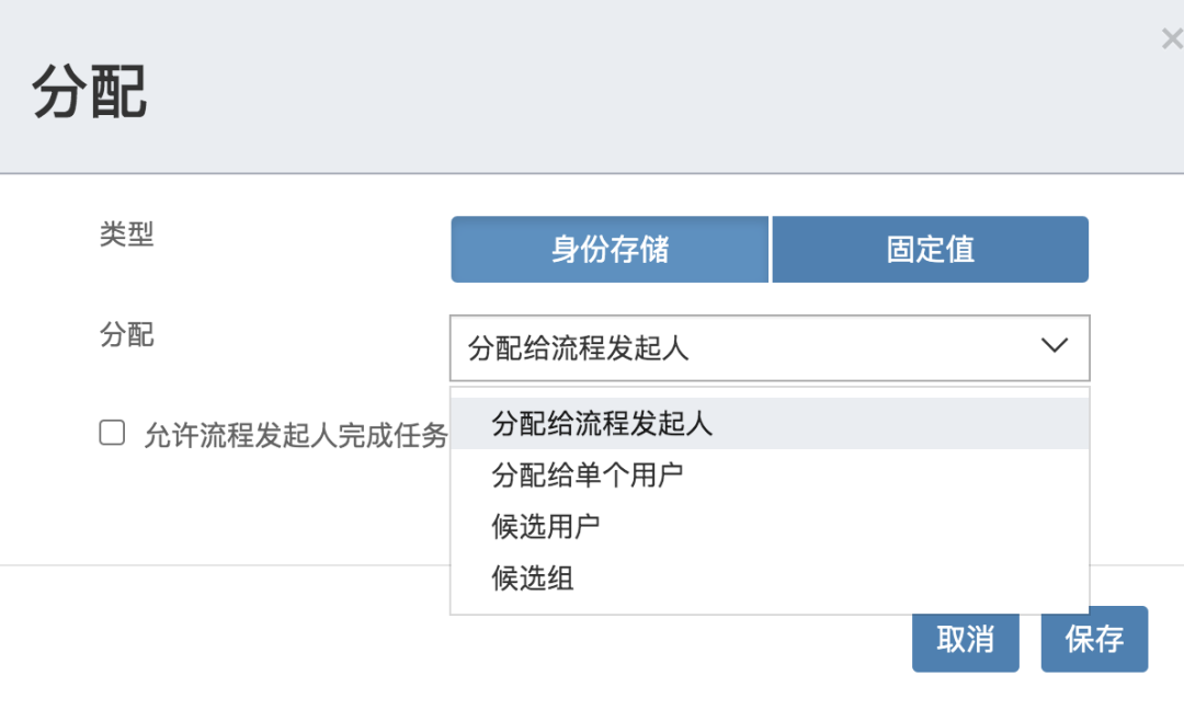 选中第一个 UserTask 之后,然后在下方找到分配用户,设置任务分配人: