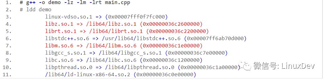 如果我链接一些so,但是程序并不用到这些so,又是什么情况呢?下面我加入链接压缩库,数学库,线程库