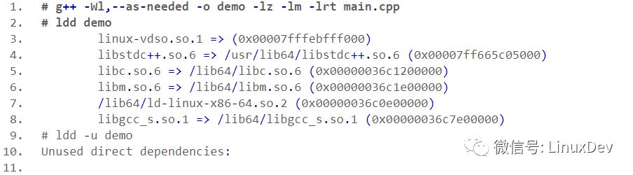 使用 -Wl,--as-needed 编译选项