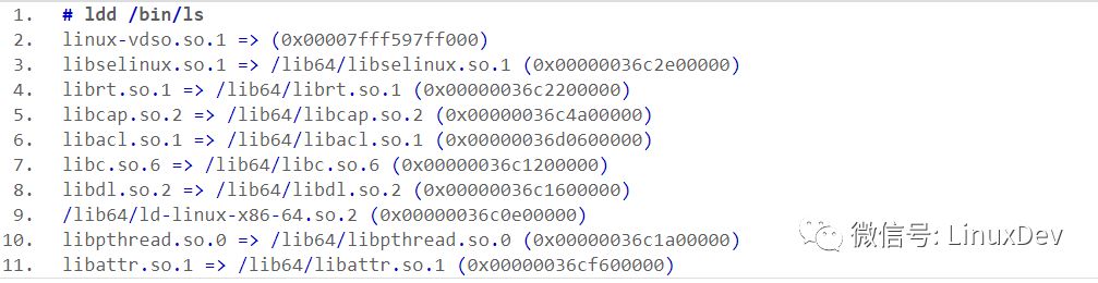 基本上每一个linux 程序都至少会有一个动态库,查看某个程序使用了那些动态库,使用ldd命令查看