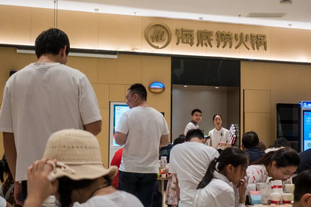 到了洗发的环节,赵白上手给我搓洗了两遍,然后涂抹护发素,期间不难感受到她尚显生疏的头皮按摩手法。她告诉我,这还是前一天别的顾客现场教她的。听说海底捞上了洗头服务,周围不少干美容美发的人专门来体验。赵白原本只打算给顾客洗一遍头,冲的时间长,按摩时间短。有一位自称开美发店的女士看不下去,给赵白传授了更具体的经验:第一遍是去油,第二遍才是洗净,按摩时上面推三下,再托起顾客的头,下面也抓三下。刚接到这项任务时,赵白有点紧张。她之前在老家做小学老师,刚来北京这家海底捞工作一个多月,此前从来没有接触过洗发行业。不过,培训比想象中简单多了,称得上是“有手就会”。洗头项目开启当天,赵白洗头,店长刘婷在一旁看着,提醒每一步需要注意的地方,有时还会亲自上手示范两下。理想状态是,洗一个头15分钟,和做一套美甲的时间差不多,但实际操作下来,光洗头就接近半小时,“翻头率”有点低。目前店里还没有配备其他人手,洗头、吹头都要赵白一人完成,一套流程走下来,下一个顾客要等待将近一小时。抛开技巧不说,店长给赵白培训得更多的是,在洗头时如何与顾客交流。万丰桥海底捞是一栋独立的二层楼,周围都是居民楼,只有海底捞一家餐饮店,显得孤零零的。时值周五,店里大多是附近住着的中老年人,年轻人得等下了班或者周末休息才会大量出现。▲ 海底捞排队等位的人。图 / 视觉中国
