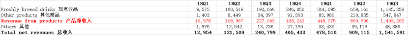 张麒麟给记者算了一笔账,从瑞幸之前公布的财报数据来看,目前已知的瑞幸在2019年的二、三季度的产品净收入分别为8.7亿元和14.9亿元。另外,瑞幸在之前的三季度业绩指引之中曾有过预测,瑞幸四季度的产品净收入将预计在21亿元到22亿元之间。