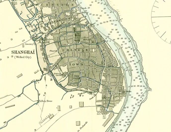 上海及其周边(1862年),图片来源:英国水文测量局(United Kingdom Hydrographic Office,UKHO),左下角标注出了婴儿塔的位置