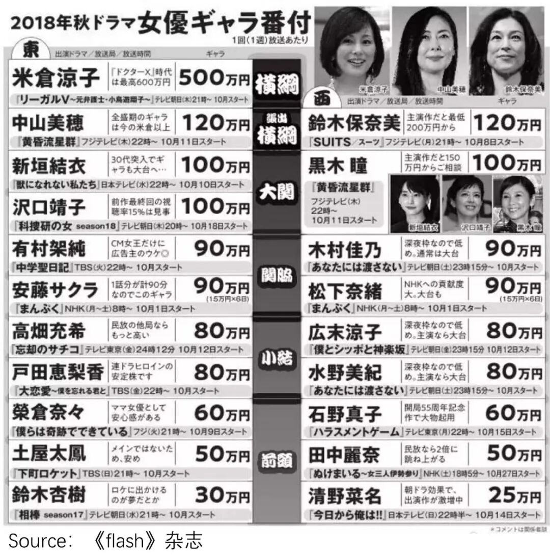 据《flash》杂志披露,日本头部女明星的片酬,大多不足100万日元(约合人民币5万),相当于日本白领的平均薪酬水平。