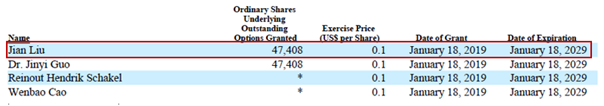 刘剑在瑞幸并未持有任何股份,而是只拥有47408股期权,期权行权价格为0.1美元,行权期限为10年。