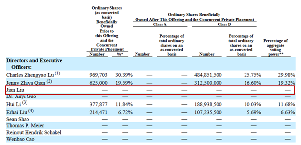 根据招股书,刘剑在瑞幸并未持有任何股份