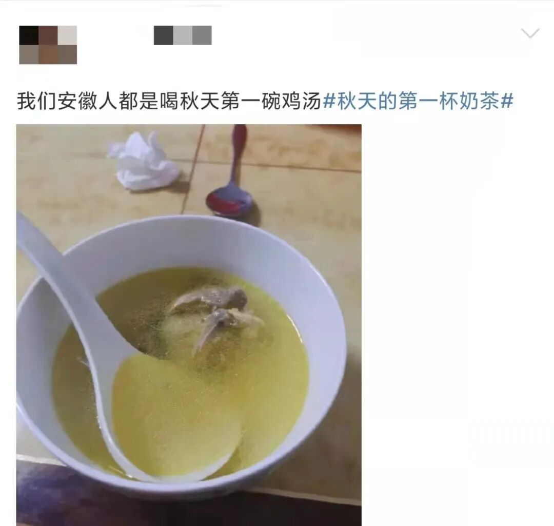 在别人都手捧秋天的第一杯奶茶时,安徽人也喝上了秋天的第一碗鸡汤。