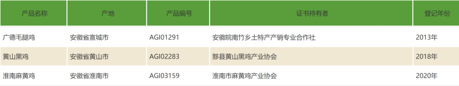 其实,像广德毛腿鸡这样的凡尔赛鸡在安徽还不止这一种,全安徽省一共有三种鸡都登记了农产品地理标志,属实是养鸡大省了。
