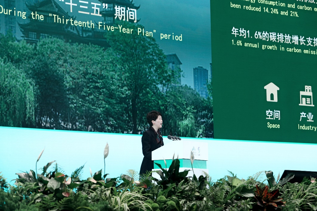 联合国副秘书长、人居署执行主任麦慕娜•莫哈德•谢里夫通过视频发表了开幕致辞,强调了绿色低碳发展驱动城市转型的重要性。她赞赏成都作为公园城市,在推动碳中和方面开展的一系列低碳行动,以及成都展示的绿色低碳解决方案的城市转型之路。并呼吁各国、各城市在“一带一路”国际合作框架下就气候行动重点展开进一步合作,鼓励以变革创新精神为引领,推动绿色、低碳、可持续的城市发展。