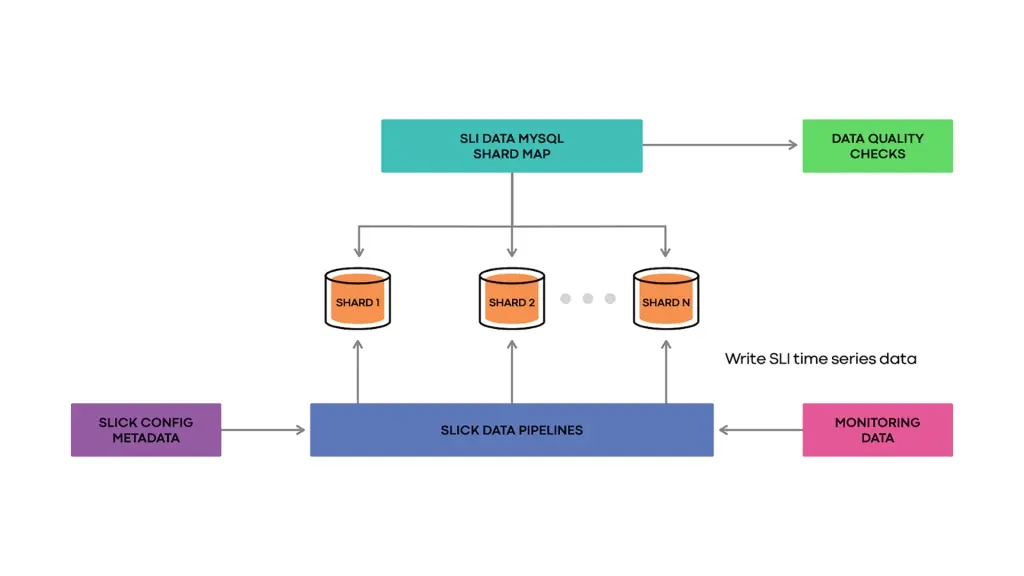 SLICK服务(SLICK SERVICE):提供API的服务器,能够回答诸如“如何为特定的可视化计算SLO?”这样的问题。服务器允许我们抽象出关于数据存储和分片的所有细节,使调用者能够轻松找到所需数据。