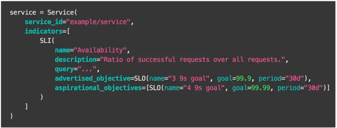 服务开发团队通过UI或者编写一个简单的配置文件来支持SLICK,该文件遵循带有服务名称等信息的DSL,可以查询SLI时间序列以及相应的SLO。