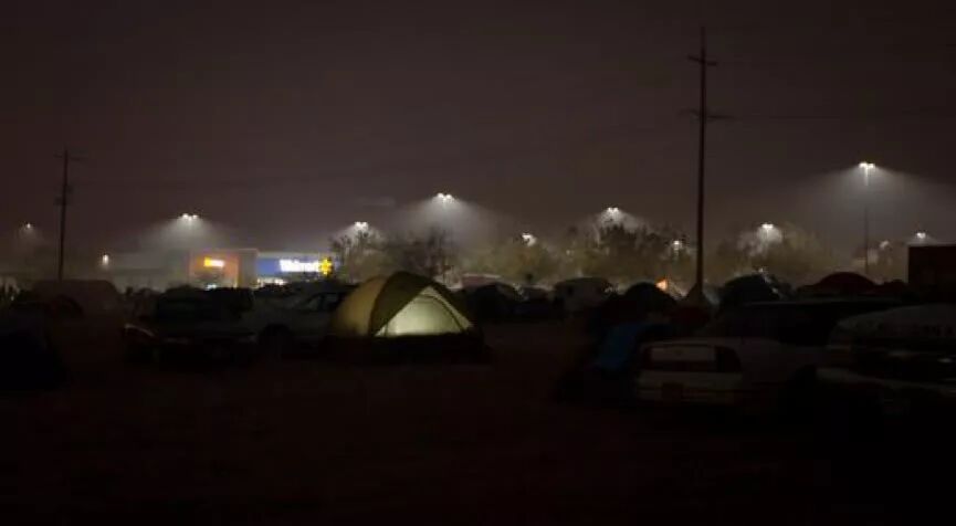 停车场中的“临时难民营”