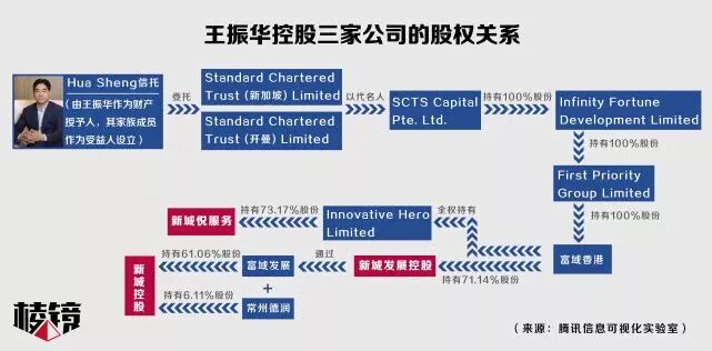 新城发展控股财报显示,Standard Chartered Trust (Singapore) Limited作为Hua Sheng信托(由王振华作为财产授予人,其家族成员作为受益人设立)的受托人,透过其代名人SCTS Capital Pte. Ltd.持有Infinity Fortune Development Limited 100%的已发行股份,而Infinity Fortune Development Limited持有First Priority Group Limited 100%的已发行股本。