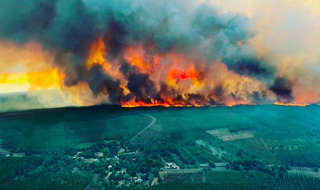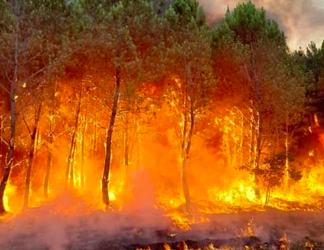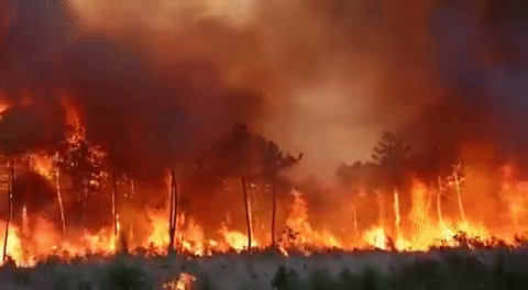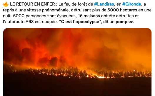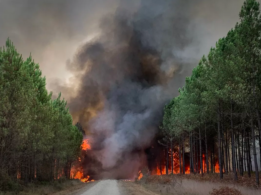 👉吉伦特省(Gironde)大火烧毁约6000公顷土地,兰迪拉斯附近重新起火;