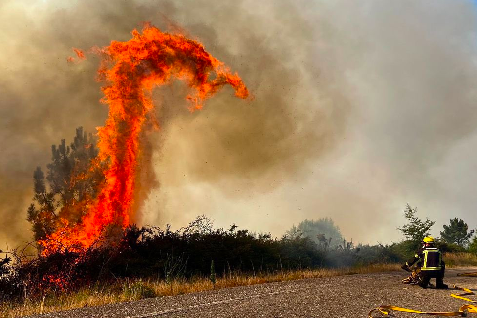 “火上浇油”的是,这次,不仅是干旱的焦土+高温+火,还有旋转的风(法媒原文是des vents tournants)来加持。
