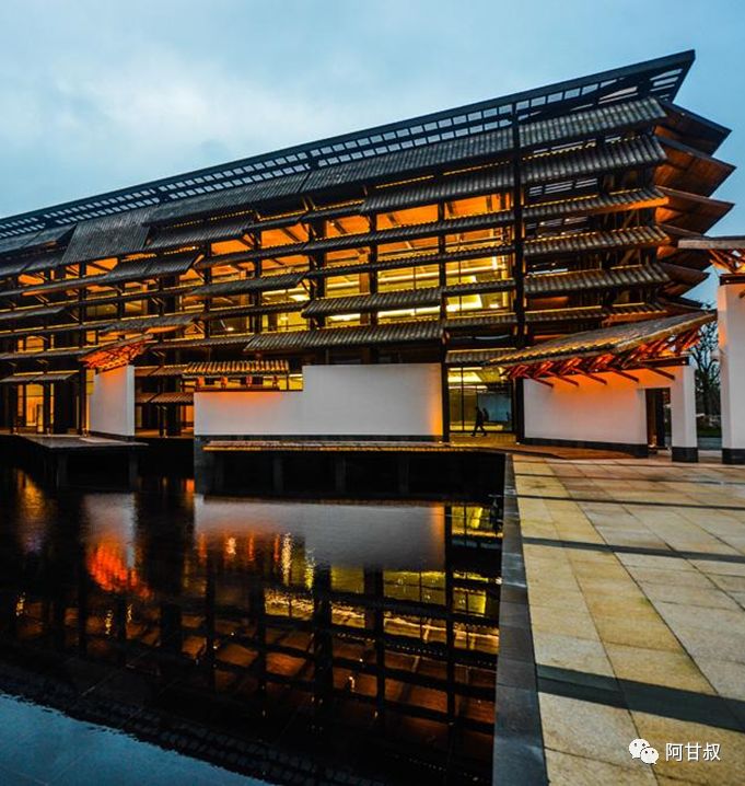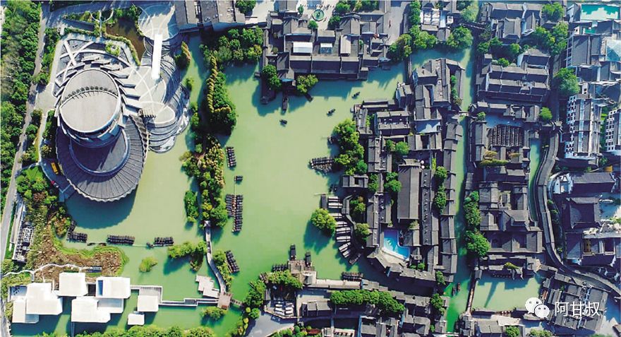 于是在古镇里多了一朵造型像并蒂莲的乌镇大剧院。