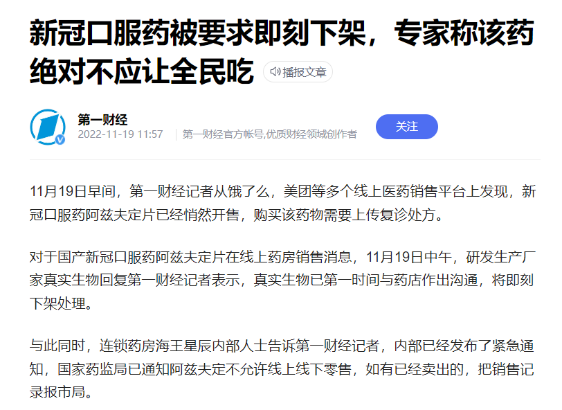 很多读者不明白,同样是国家批准用于治疗新冠的口服药,凭什么连花清瘟就卖断货,而阿兹夫定却连上架的机会都不给呢?连花清瘟和阿兹夫定的区别