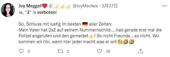 德国多州在公开场合禁用Z字标志的规定引发了网友讨论。不少德国网友拿此事开起了玩笑: